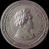 39 - Très belle médaille avec un portrait de Beethoven sur l'avers, la maison natale du compositeur et son violon sur le revers.