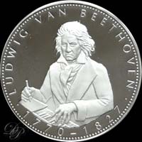 34 - Médaille Allemande réalisée le 26 mars 1977 à l'occasion du 150e anniversaire de la mort de Beethoven.