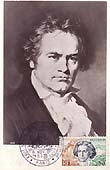 De très nombreux timbres et autres documents philatéliques honorent Ludwig van Beethoven, et dans de très nombreux pays. L'Allemagne est l'un des plus prolifique. Il existe des timbres de Beethoven réalisés en France, à Monaco, en Autriche, dans les pays d'Afrique, en Amérique du sud... Il est curieux de remarquer que des pays anglo-saxons tels que les Etats-Unis d'Amérique, le Canada, le Royaume Uni n'ont toujours pas honoré le compositeur avec un timbre. Néanmoins, en tout, il en existe plus de 200...Et en voici déjà plus de 150, avec leur date d'émission et leur numéro de catalogue (souvent Michel, parfois Scott ou Yvert et Tellier)... Ils sont classés par pays et par continents. Si vous avez des scans de timbres que je ne possède pas, vous pouvez me les adresser. D'avance, merci. |